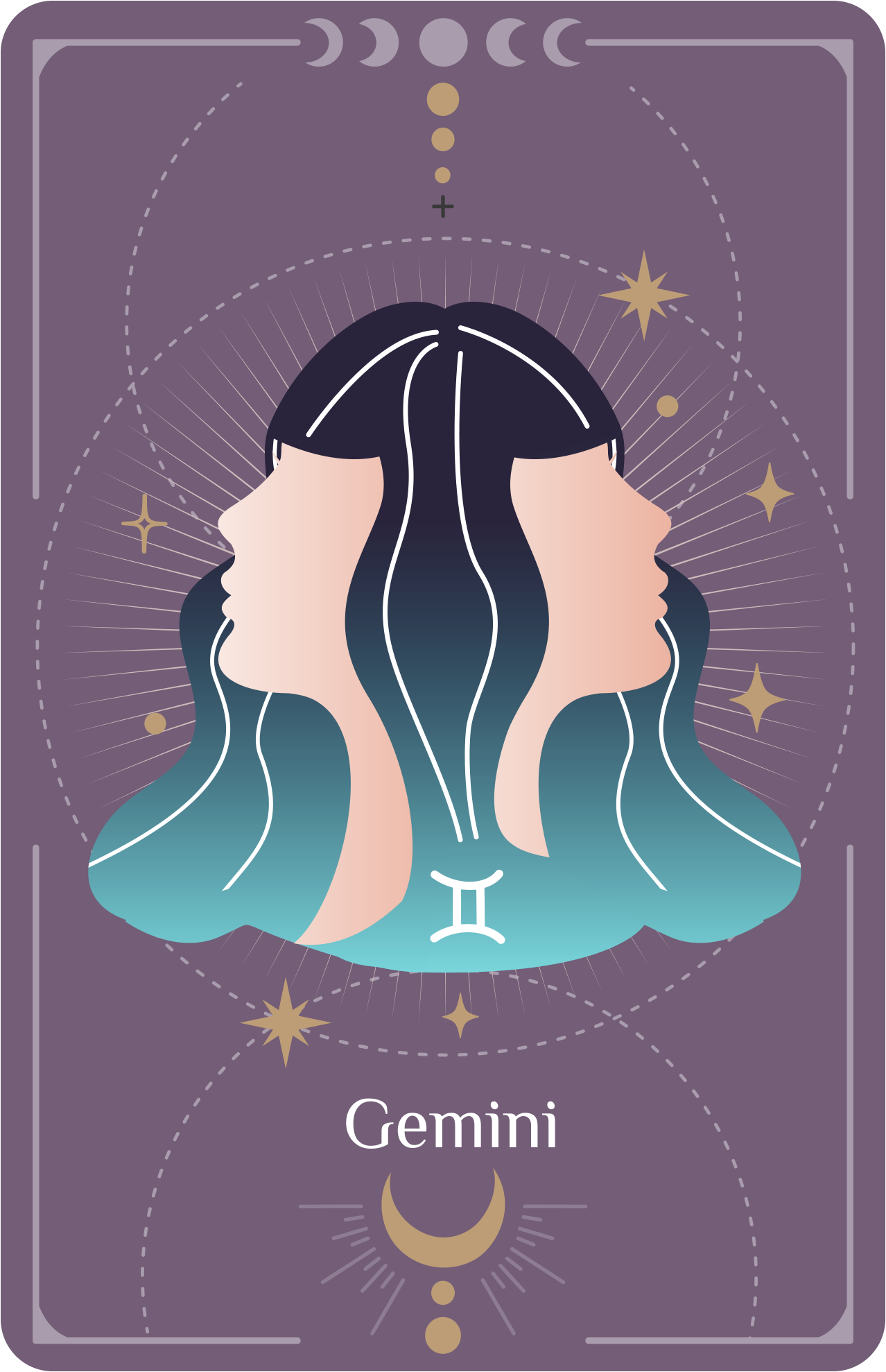 Los Géminis, influenciados por Mercurio, son la personificación de la dualidad y la comunicación. Este signo se caracteriza por su ingenio, curiosidad y adaptabilidad. Los Géminis disfrutan de la variedad en la vida, siempre buscando aprender y experimentar cosas nuevas. Su mente rápida les permite manejar múltiples intereses y tareas al mismo tiempo, aunque esto a veces puede llevarlos a dispersarse. Son sociables y excelentes conversadores, capaces de ver las situaciones desde diversos ángulos. Sin embargo, su aversión al compromiso y su cambio constante de intereses pueden ser percibidos como inconstancia. La inteligencia y la flexibilidad son sus mayores fortalezas.